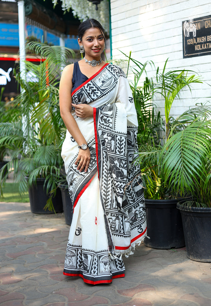 Get this summer-friendly, super stylish White Applique Work Saree with Red & Black Border for any of your casual plans. At just ₹1500, this pure cotton saree can be an excellent choice for your evening dates, college fests, or official meetings. Simply, one saree for multiple occasions!