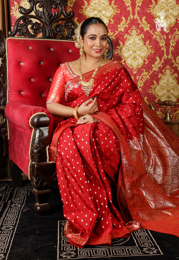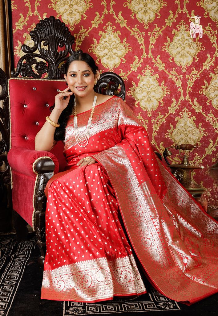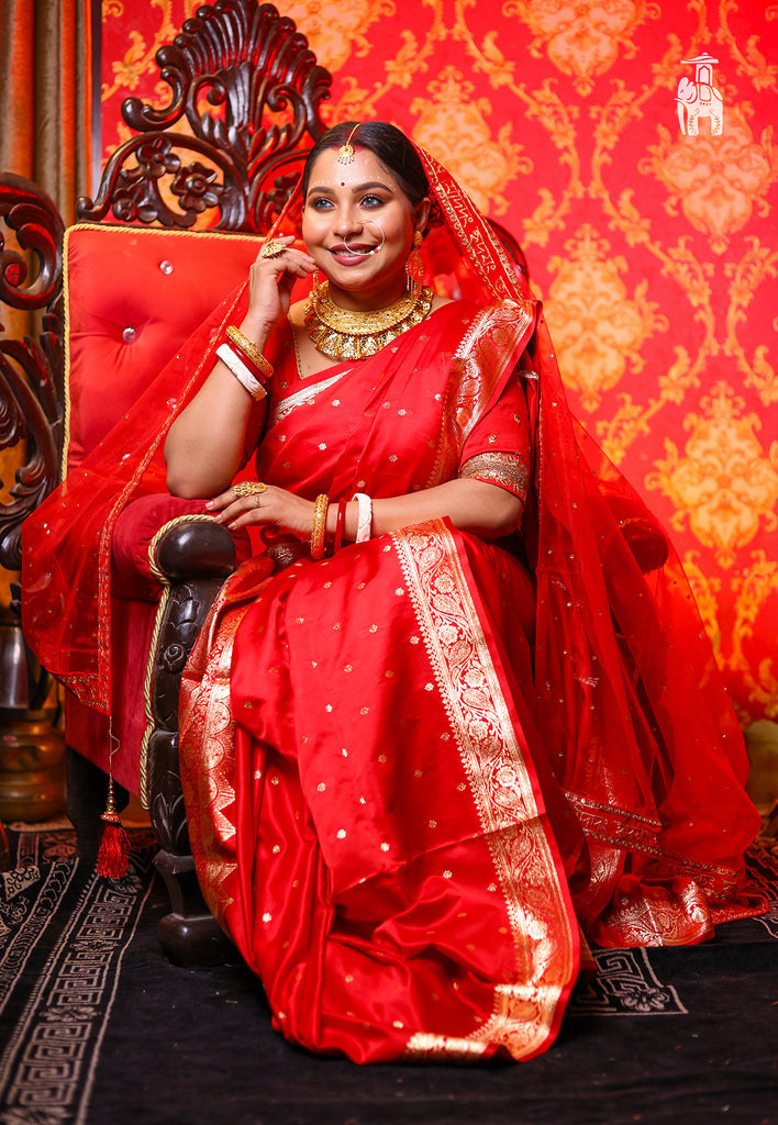 Get your bridal Red Pure Banarasi sarees, & party wear Banarasi sarees, at a starting price of ₹5040 only. Explore our latest offers and available designs by scrolling down.