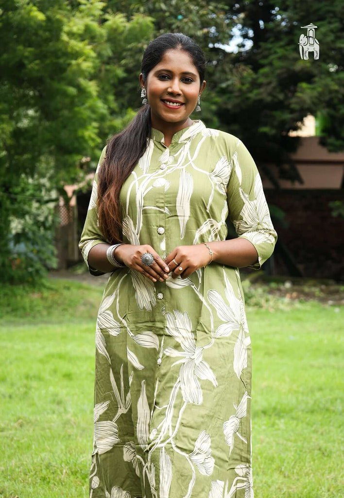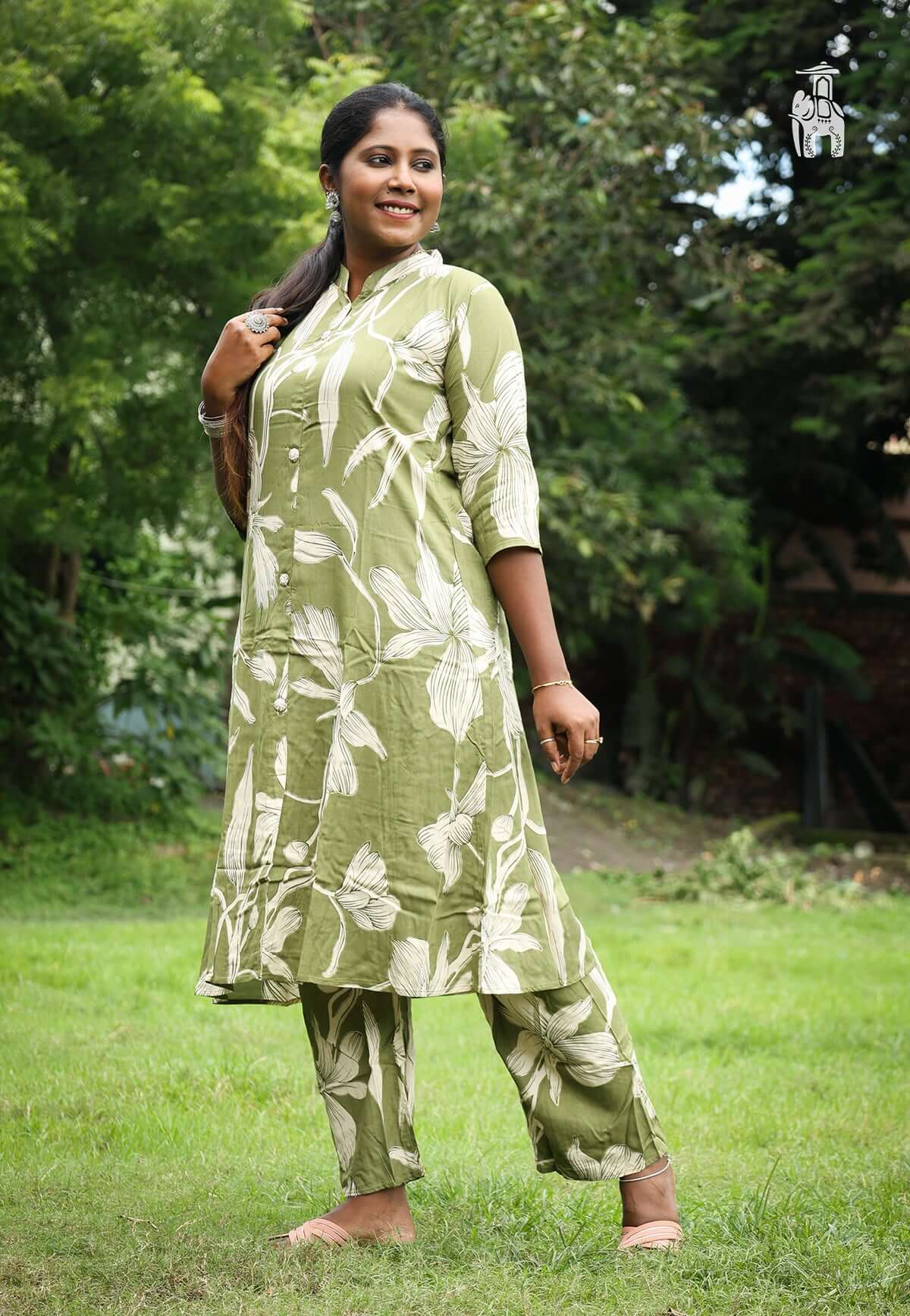 Slip into this comfortable Green Kurti Set, & catch up with this stylish formal trend, with the latest Bhojraj kurtis.