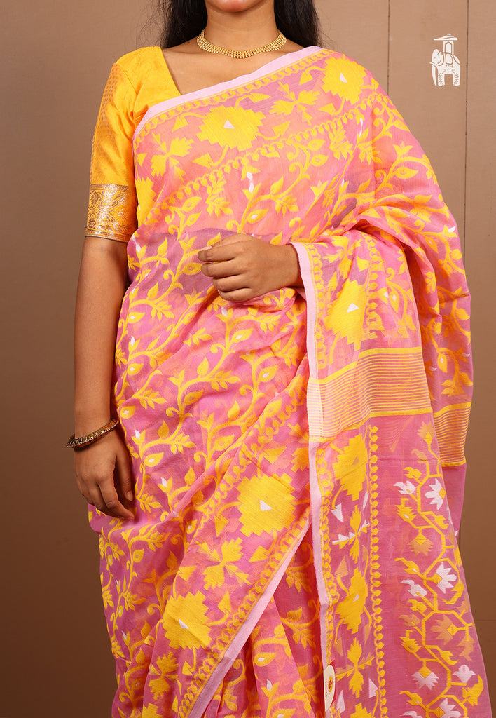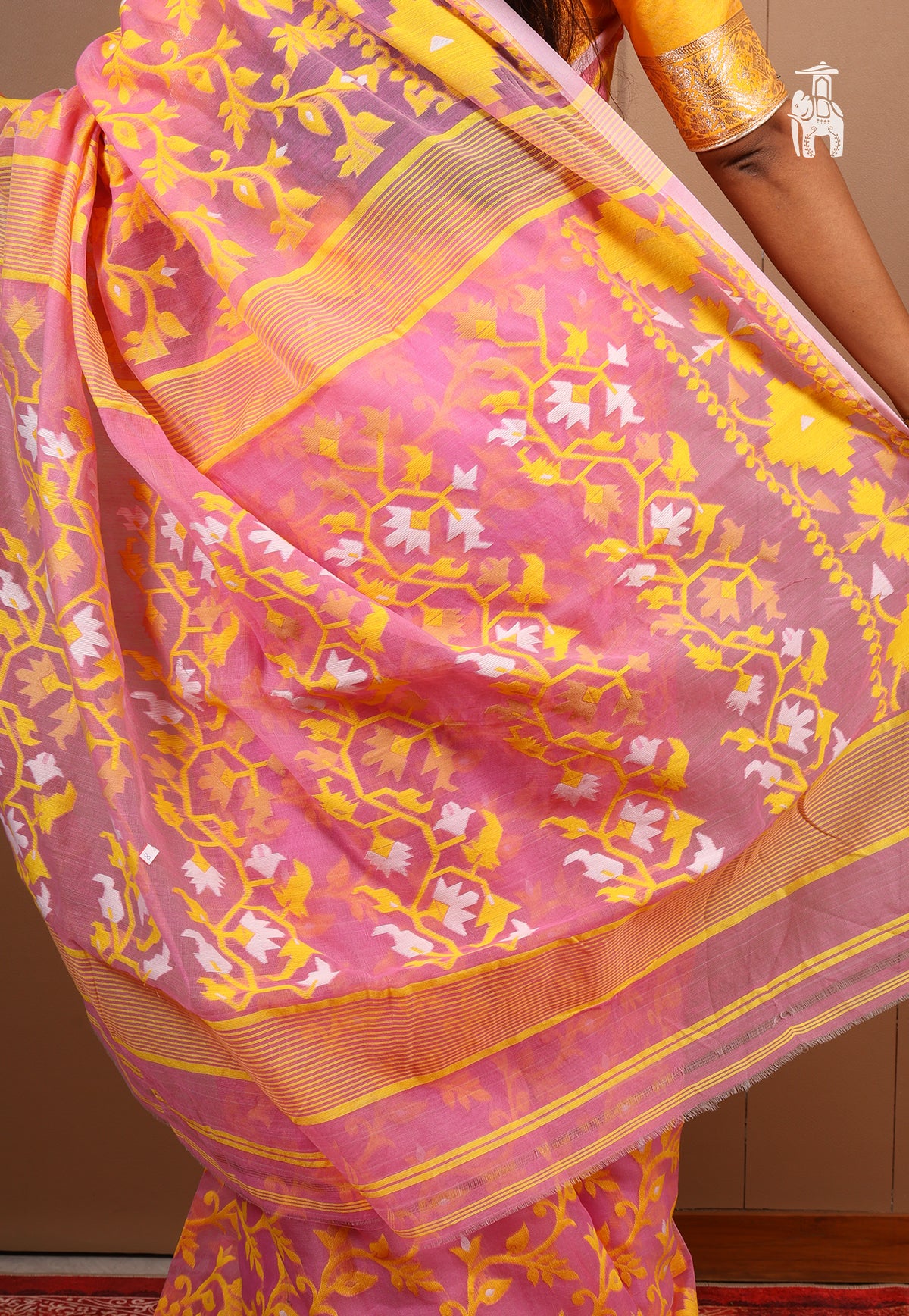 Shopping for a Dhakai Saree for special occasions? Choose this Pink Dhakai Jamdani Saree, the most beautiful piece of our collection.