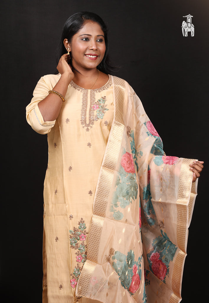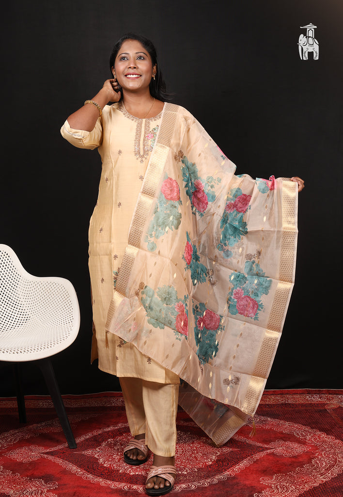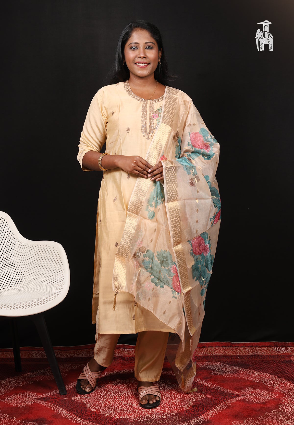 Buy this special Cream shaded Suit Set for your recent party occasions & special invitations, & get ready to grab compliments for your fashion sense.
