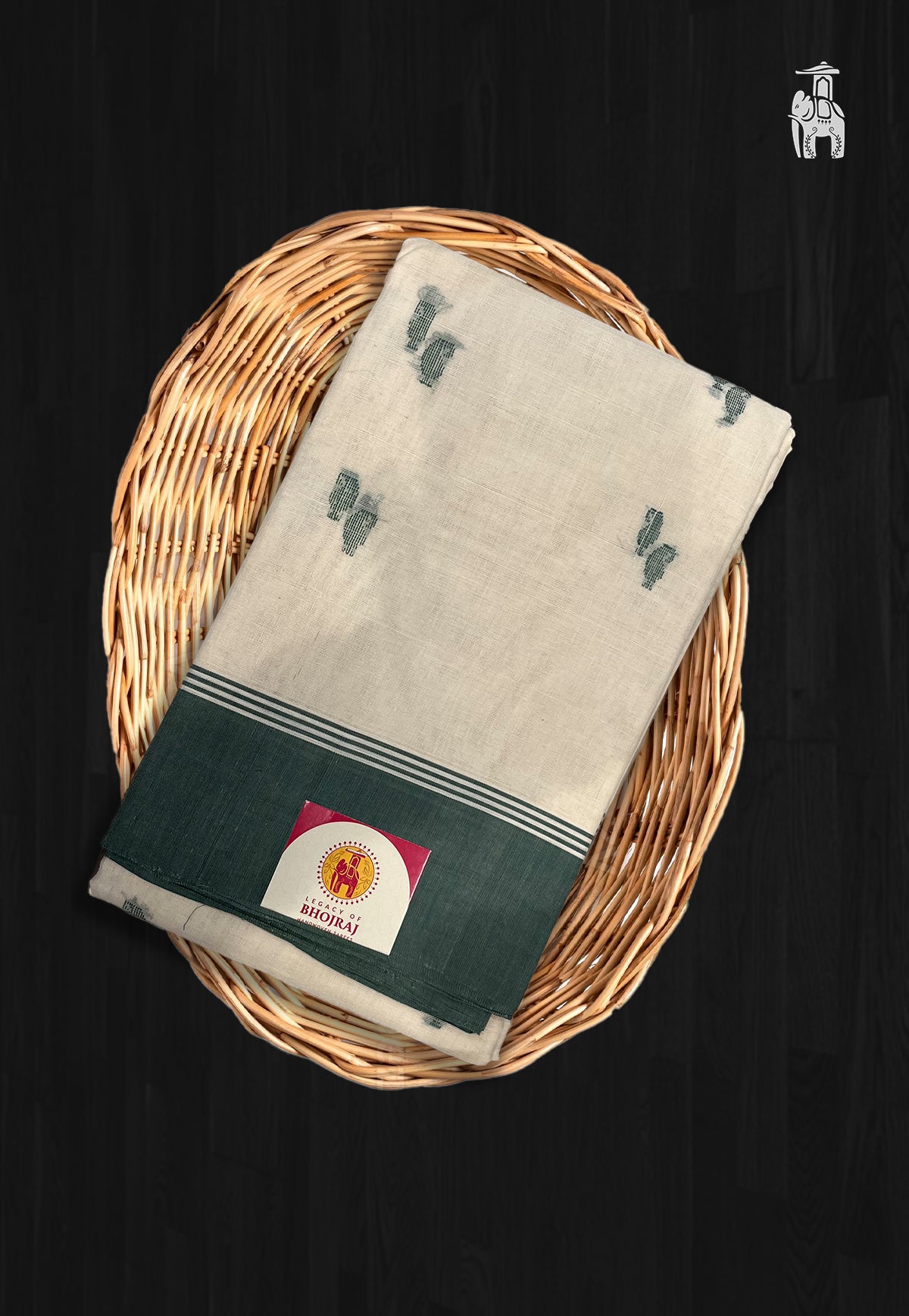 Meet the finest handcrafted White Kanchi Cotton Saree, an exclusive piece, designed for auspicious occasions.