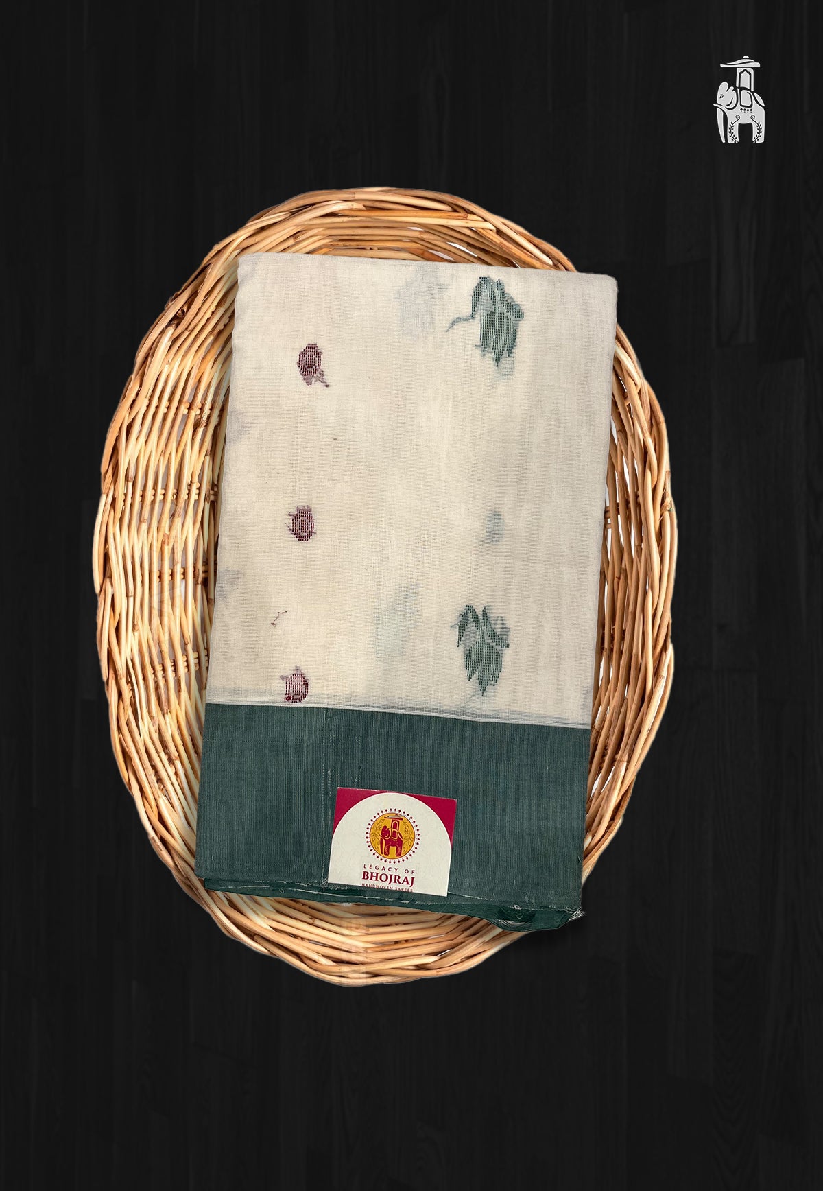 Own this handloom White Kanchi cotton Saree, a freshly arrived authentic Cotton Kanjivaram for your religious gatherings.