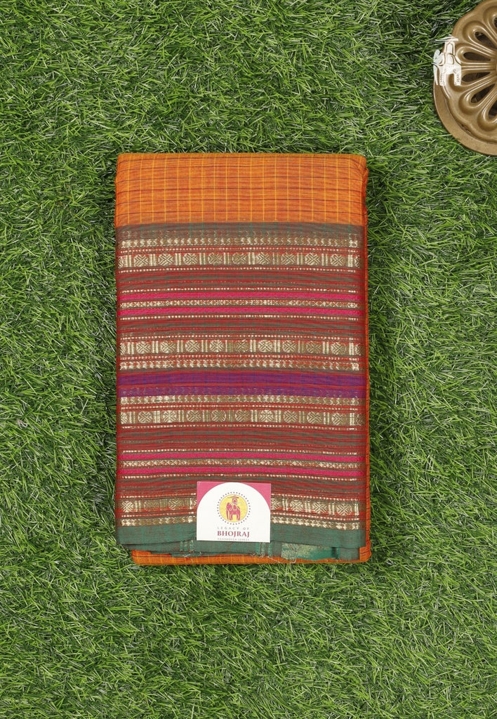 Another shade that you can opt for is Orange Cotton Kanjivaram Saree, a saree to feel lucky about.
