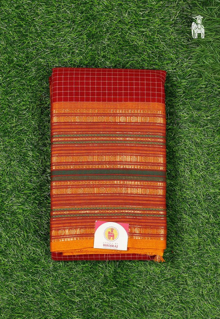 Get yourself a festive glam up with this Red Cotton saree to drape in the festive vibrancy exclusively from Legacy of Bhojraj.