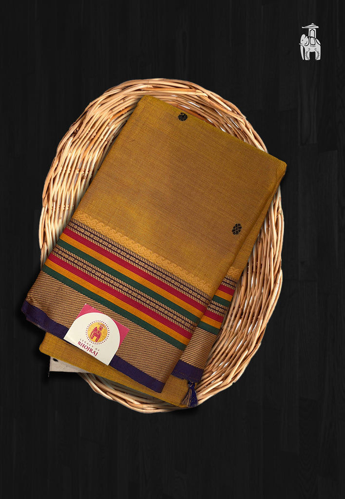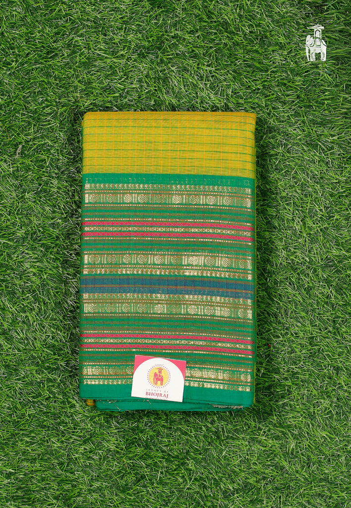 Plan a stand out look in your social gatherings with this finest Mustard Yellow Cotton Kanjivaram Saree at a super reasonable price of 1450.