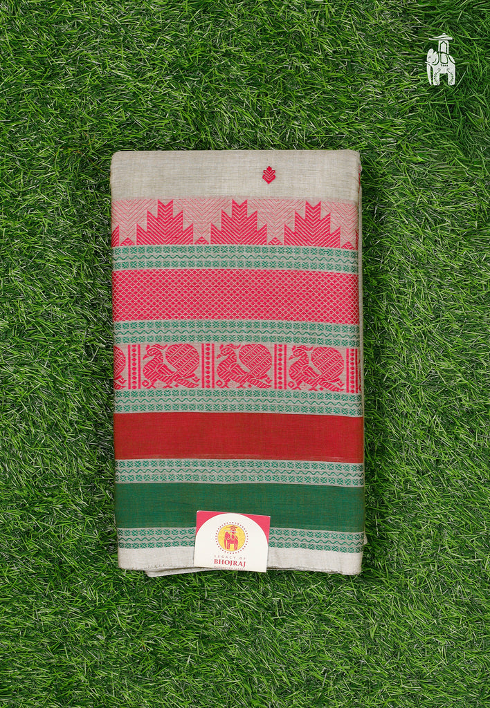 The shade of Beige makes you look smarter & bolder, while the temple border enhances the ethnic charm.