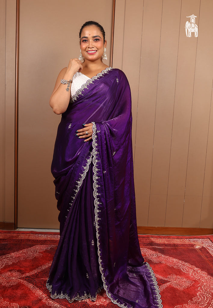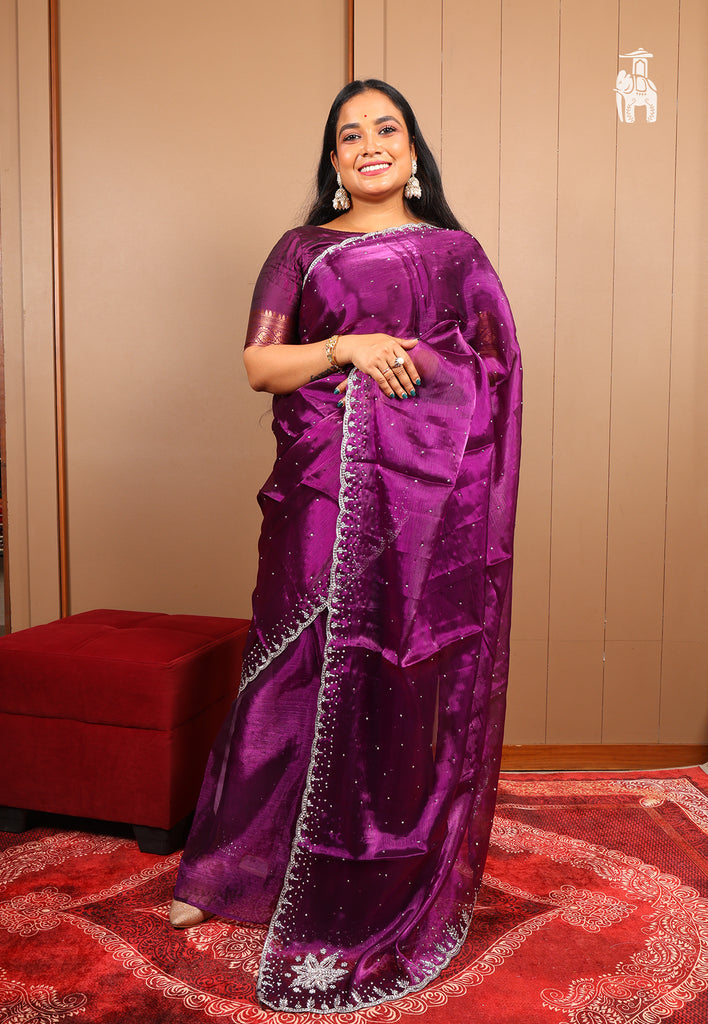 Flaunt your decency in style! Get this Purple Pure Cotton Saree with ornamental designs & mica mirror work on a traditional Cotton saree, at just ₹3000 only.
