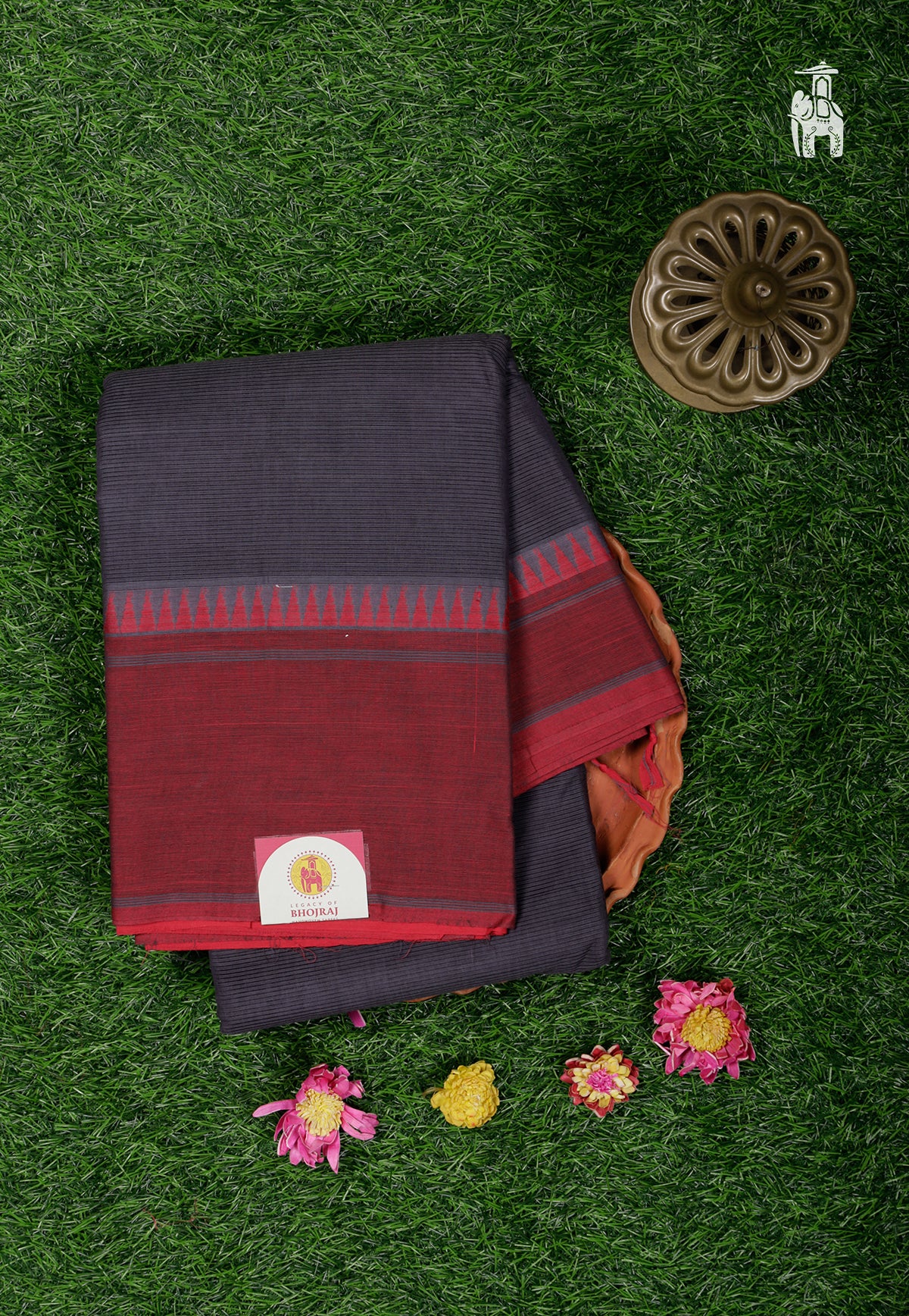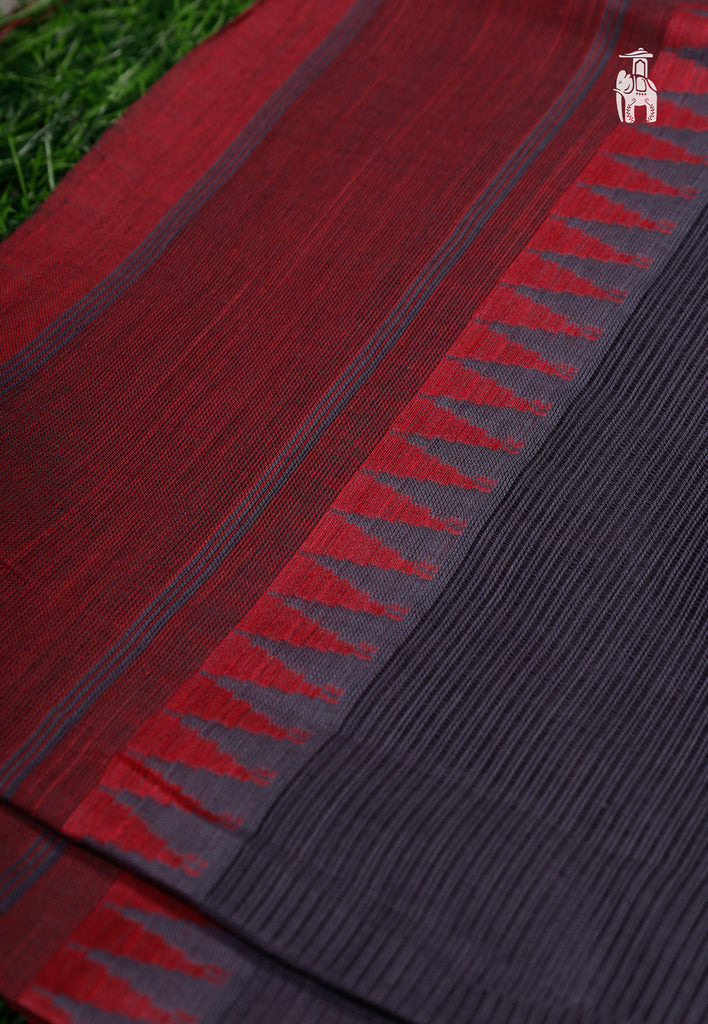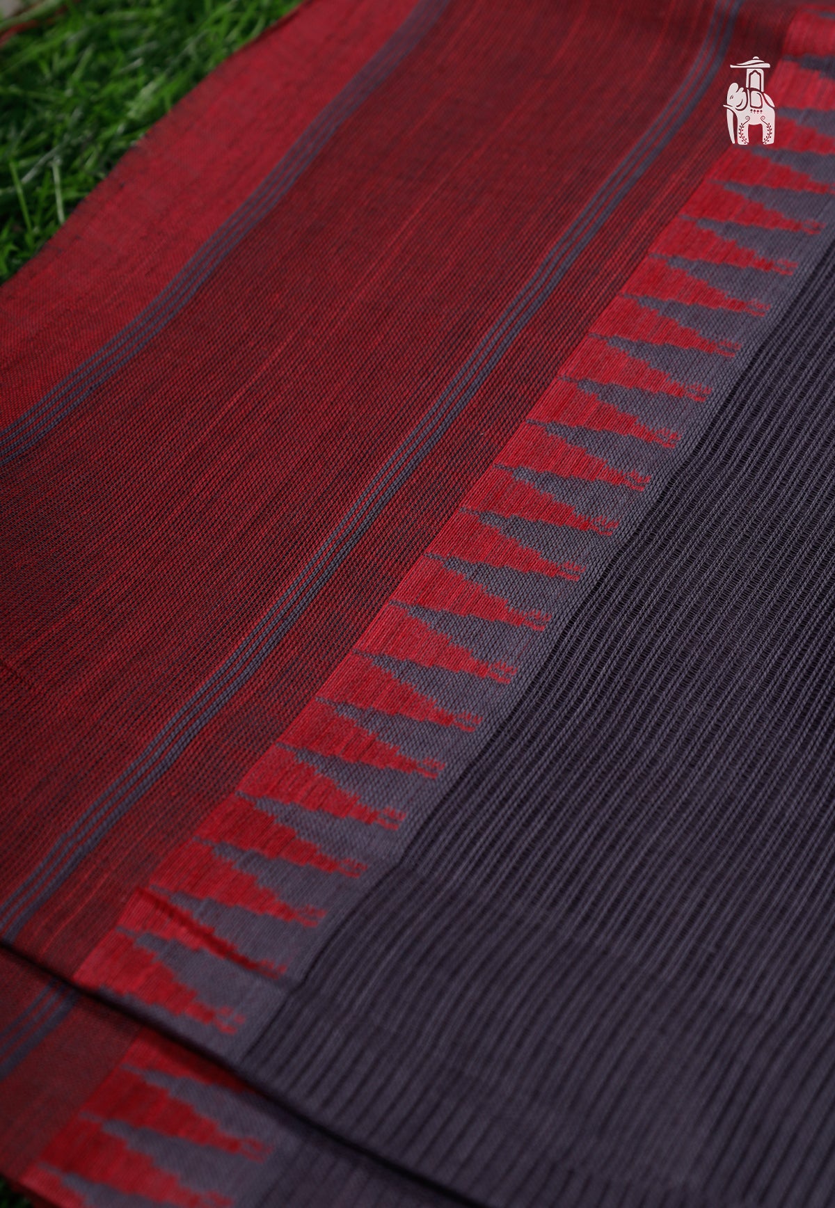 Dress in this beautiful Slate Grey Kota Mangalgiri Saree with Maroon Kanchi temple border, for your holy celebrations.
