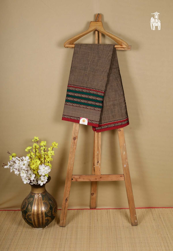 Want to try Narayanpet saree in a unique color? Try this very breathable & body-hugging Dark Brown Narayanpet Cotton Saree.