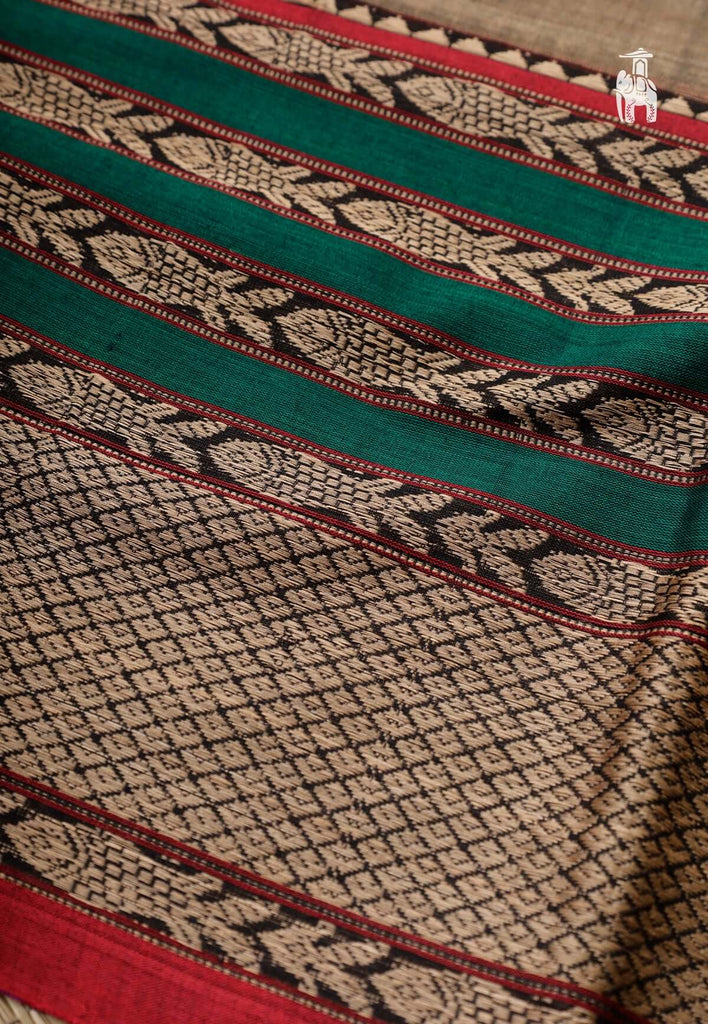 Saree features big and small borders with similar fish patterns, woven on soft, & very breathable Narayanpet Cotton fabric.