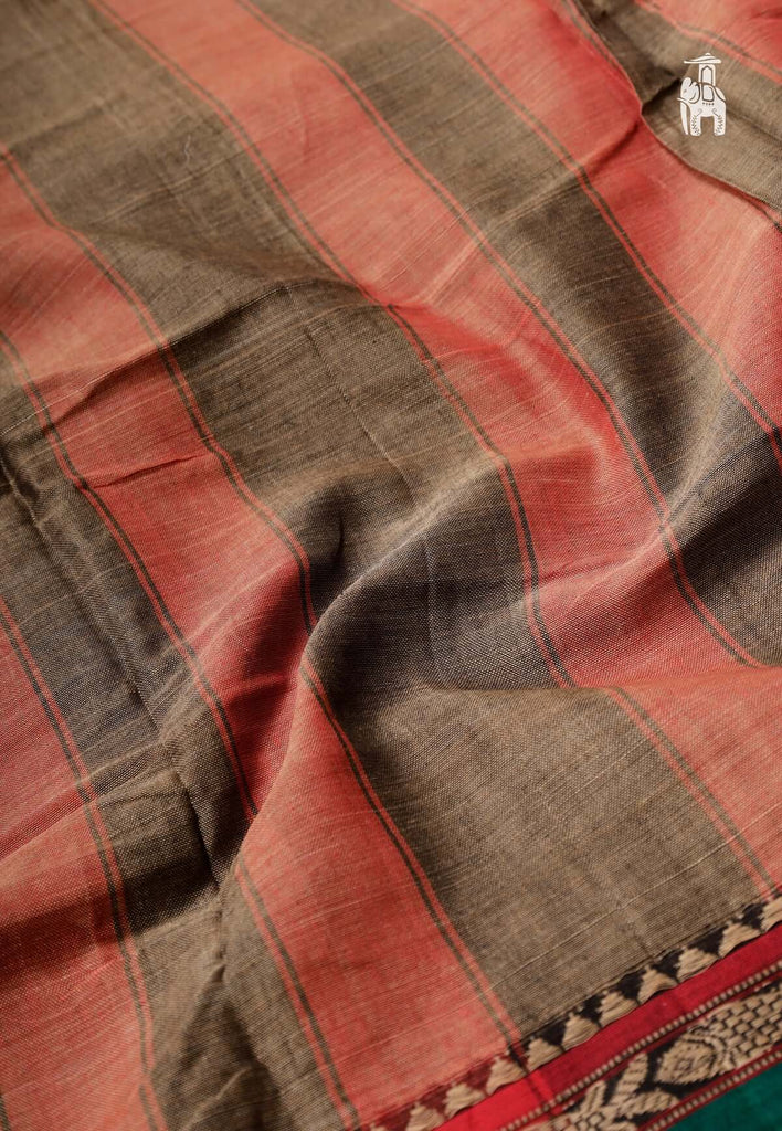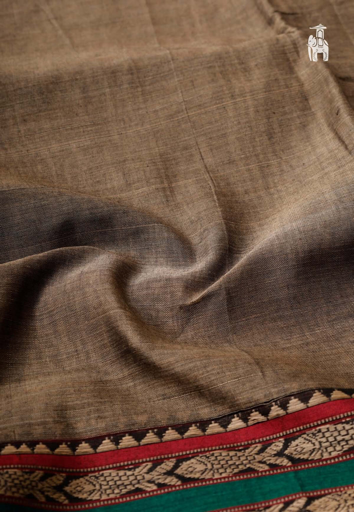 Cherish your special occasions in this Coffee Brown Narayanpet Cotton Saree with a multi color Resham fish work border.