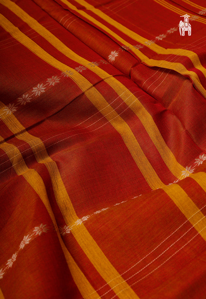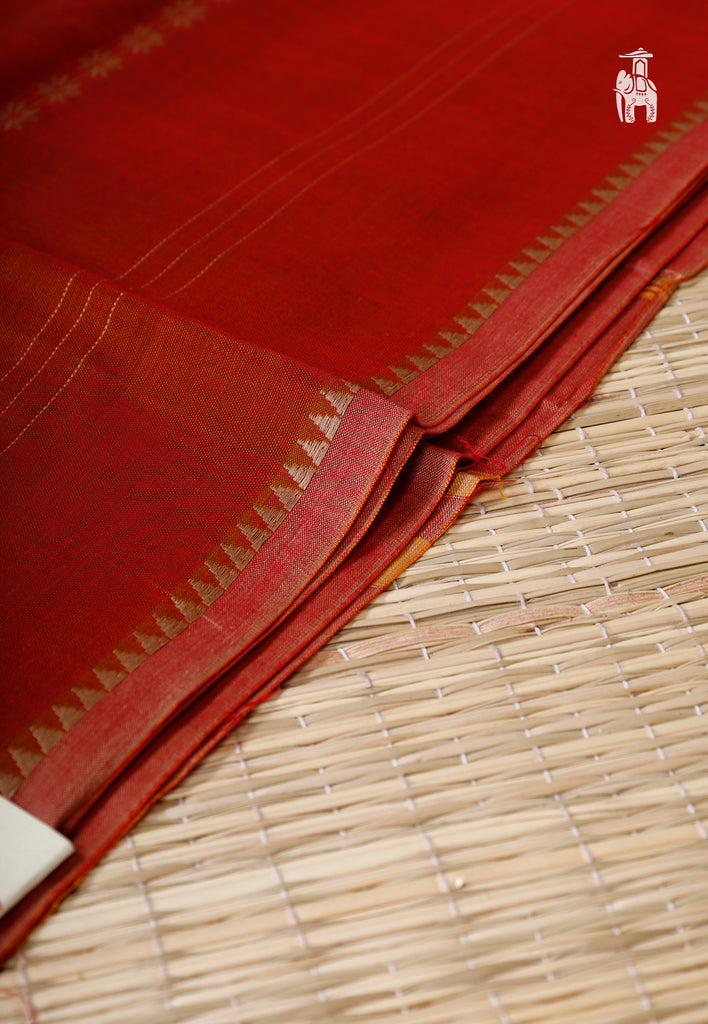 Cherish your auspicious gatherings, draping this Red Narayanpet Cotton Saree with a shiny piping border.