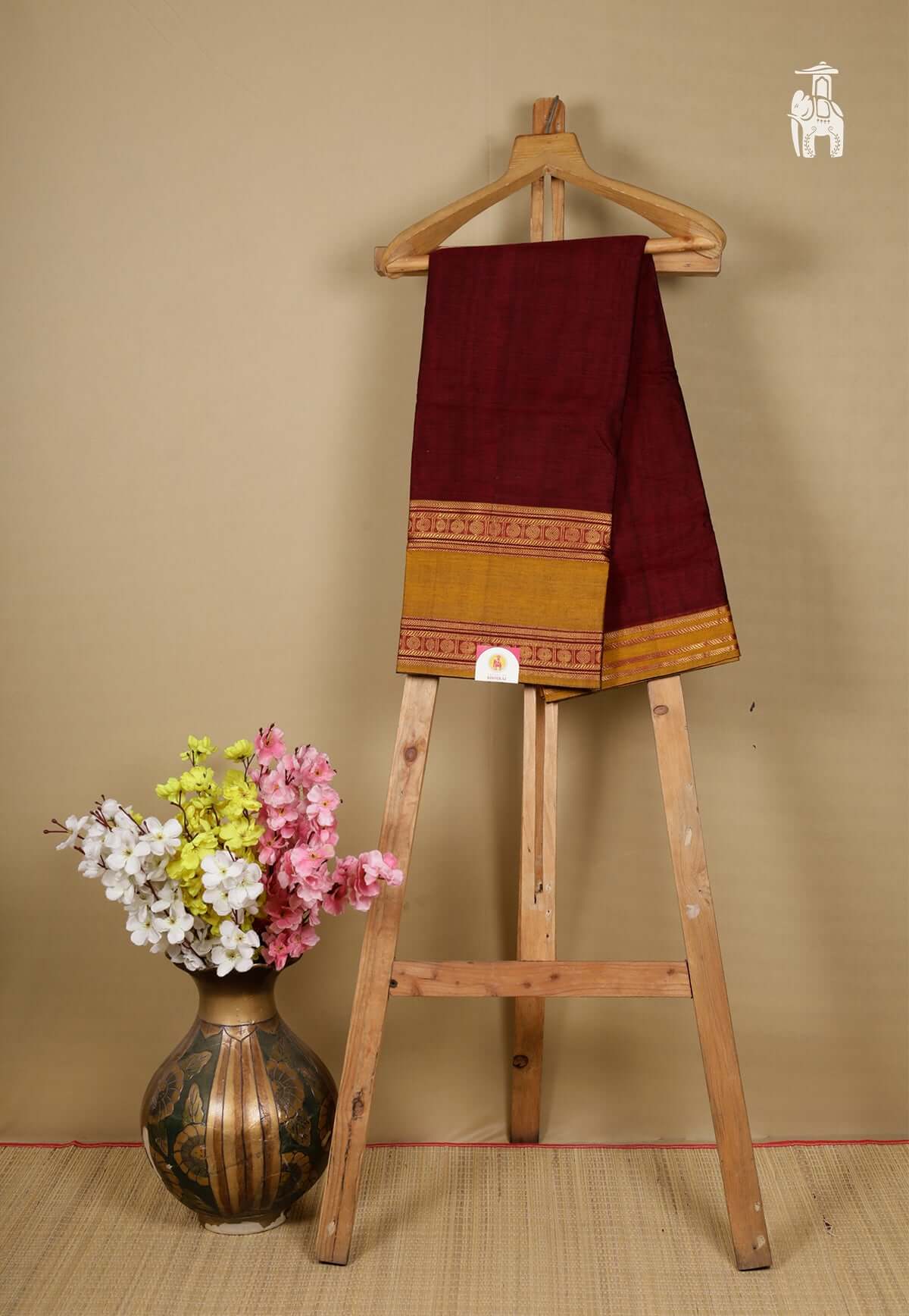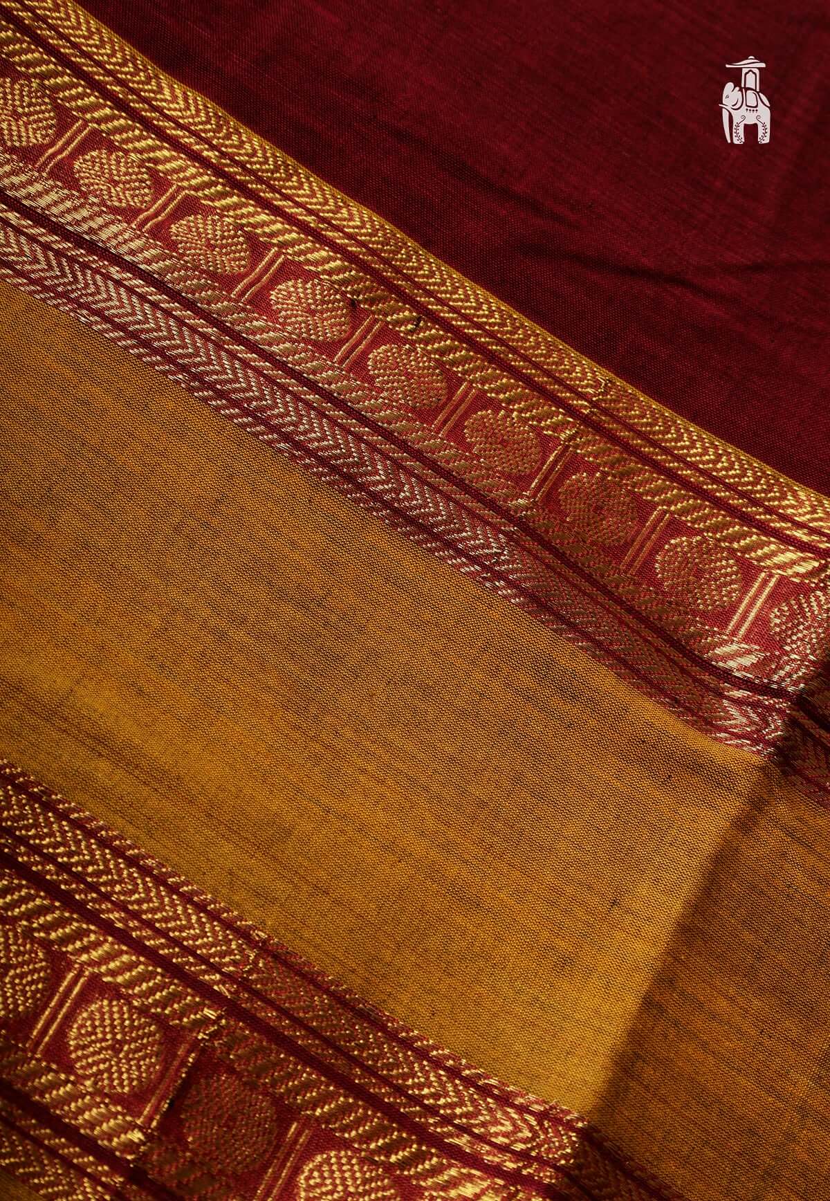 Make yourself festive ready in this Maroon Narayanpet Cotton Saree with glittery Rudraksha zari border.