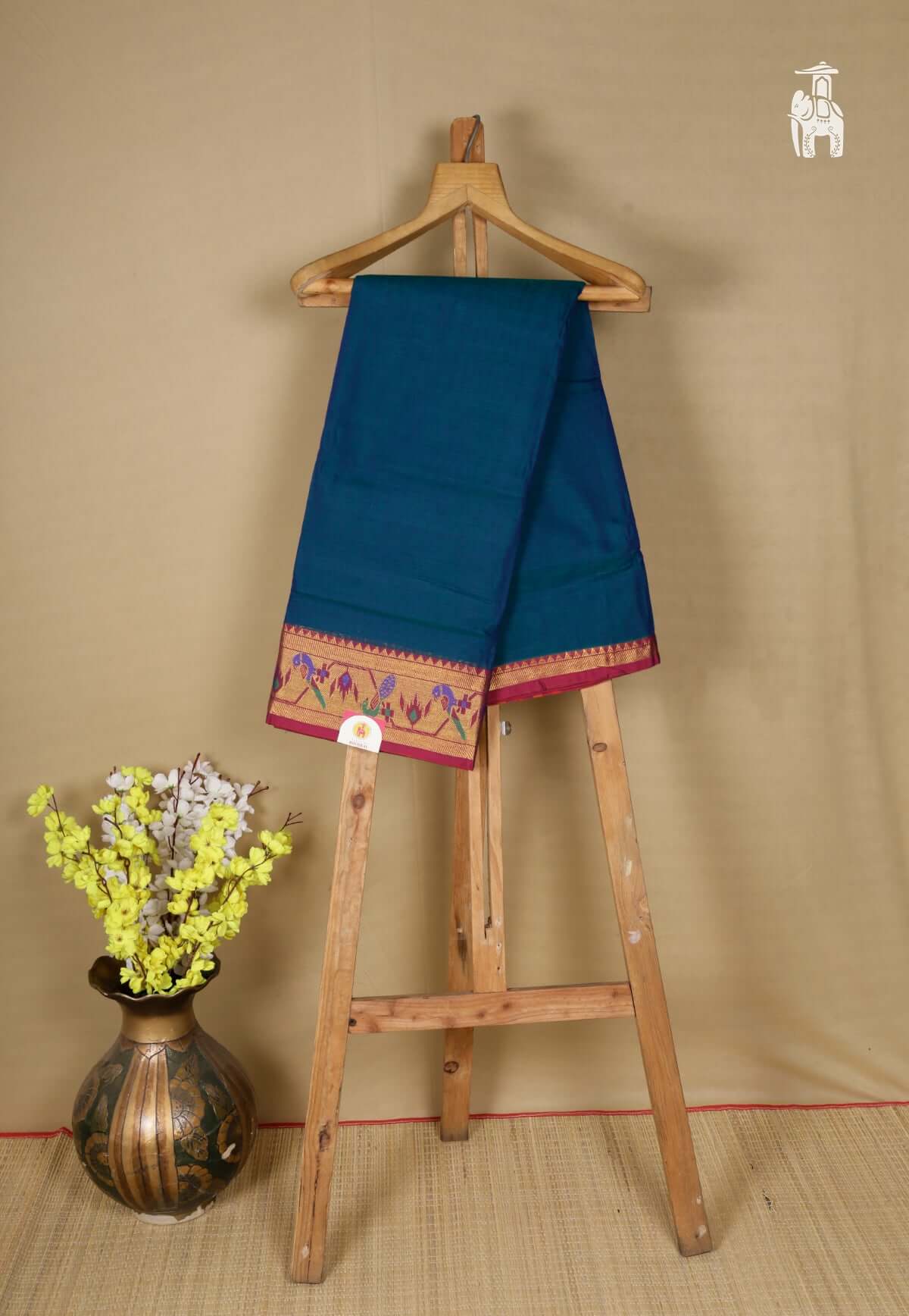 Embrace your personality in this gorgeous Dark Blue Narayanpet Cotton Saree with Paithani style border.