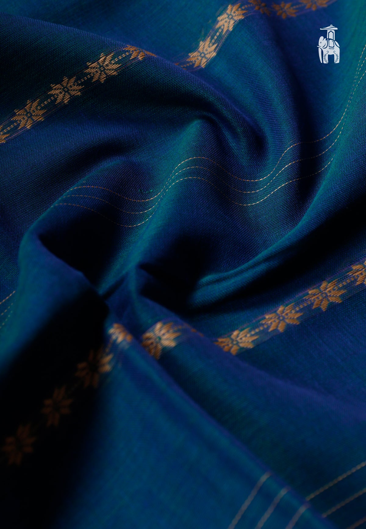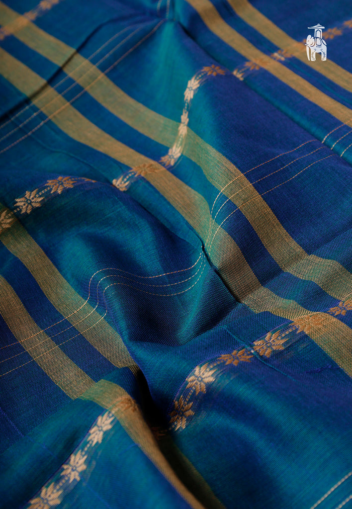 Buy this breathable, soft Blue Narayanpet Cotton Saree with mini floral motifs in horizontal line designs.