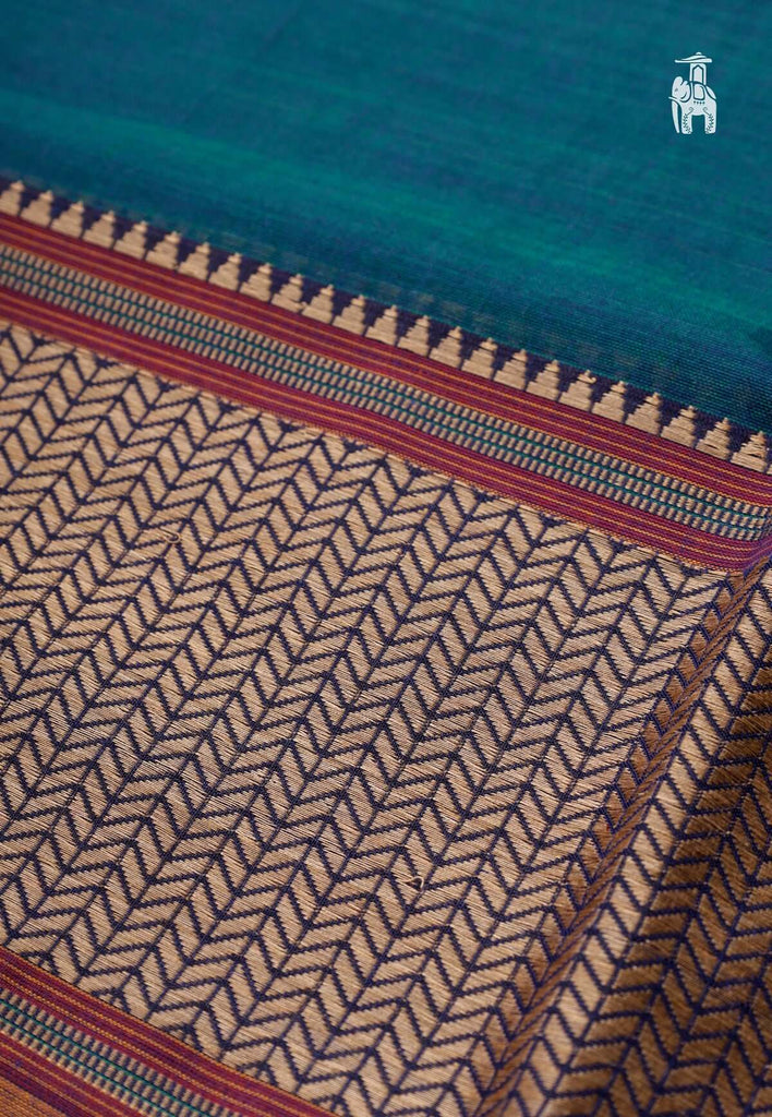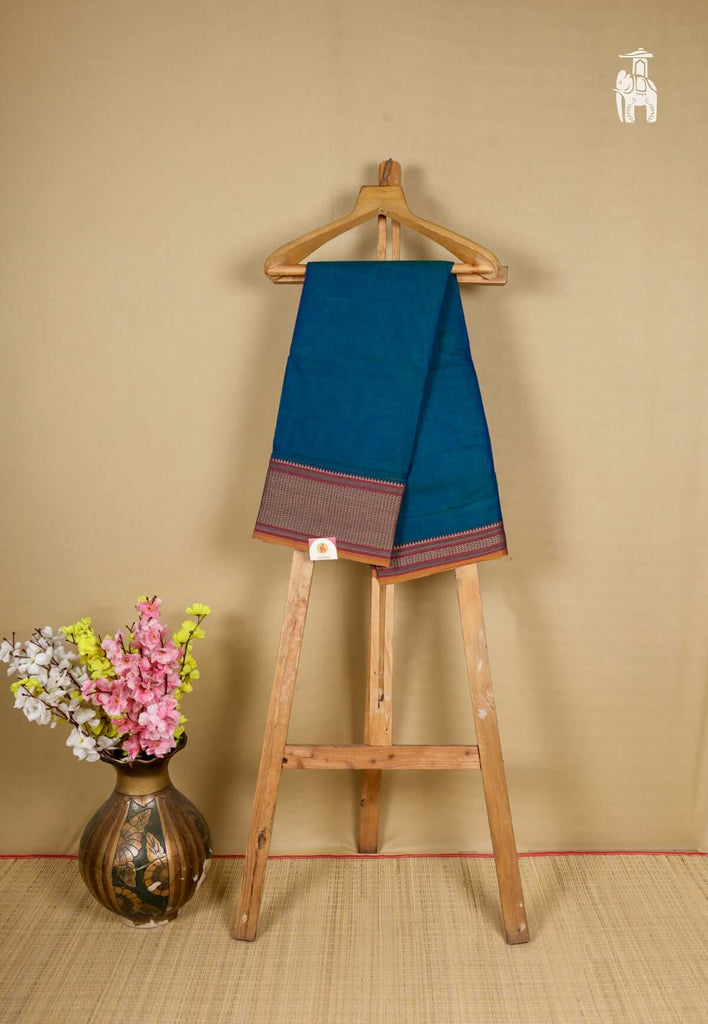 Be a confident professional in this Midnight Blue Narayanpet Cotton Saree with big & small border combination.