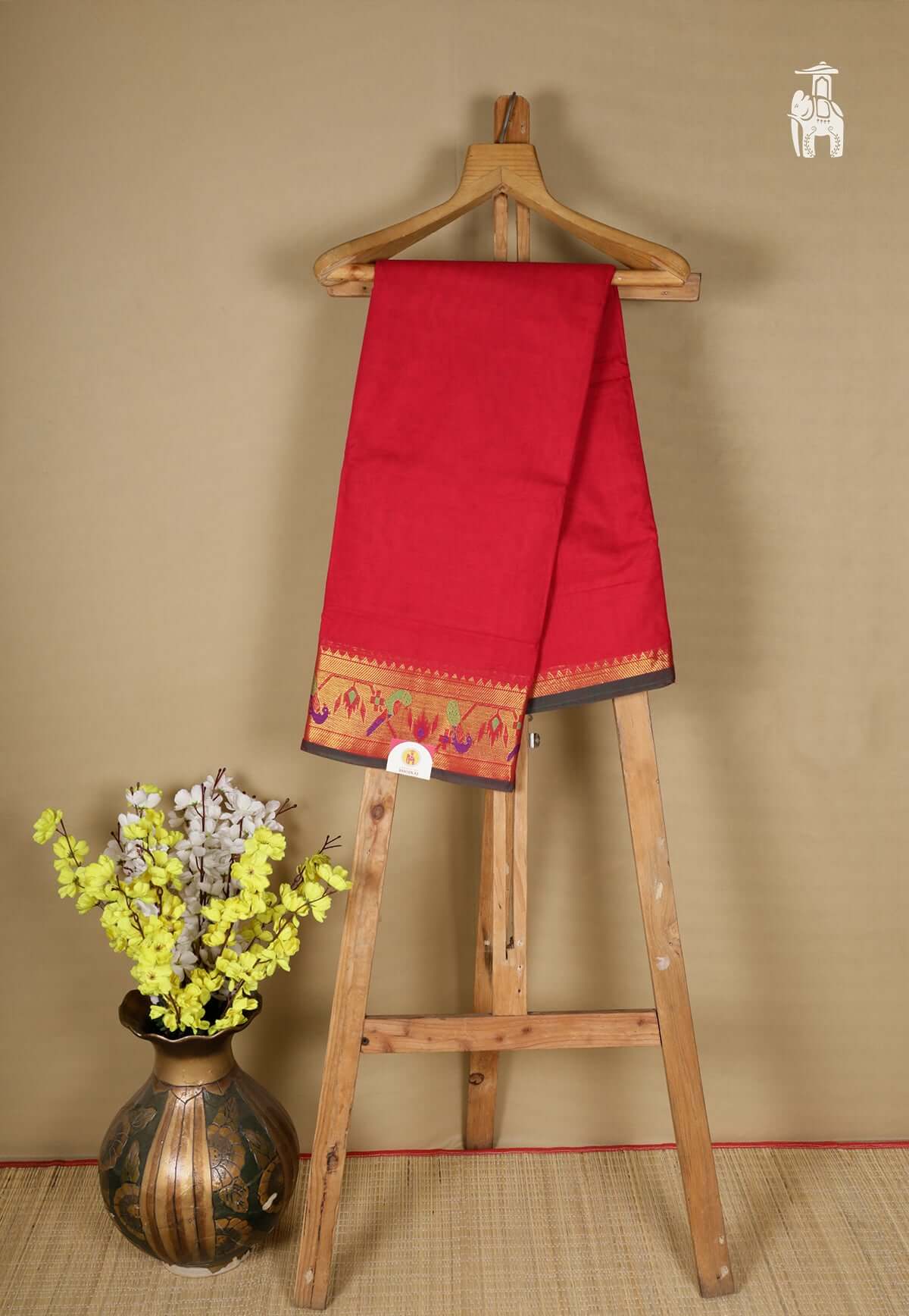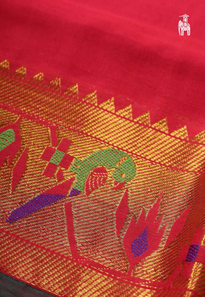 Pinkish Red Narayanpet Cotton Saree