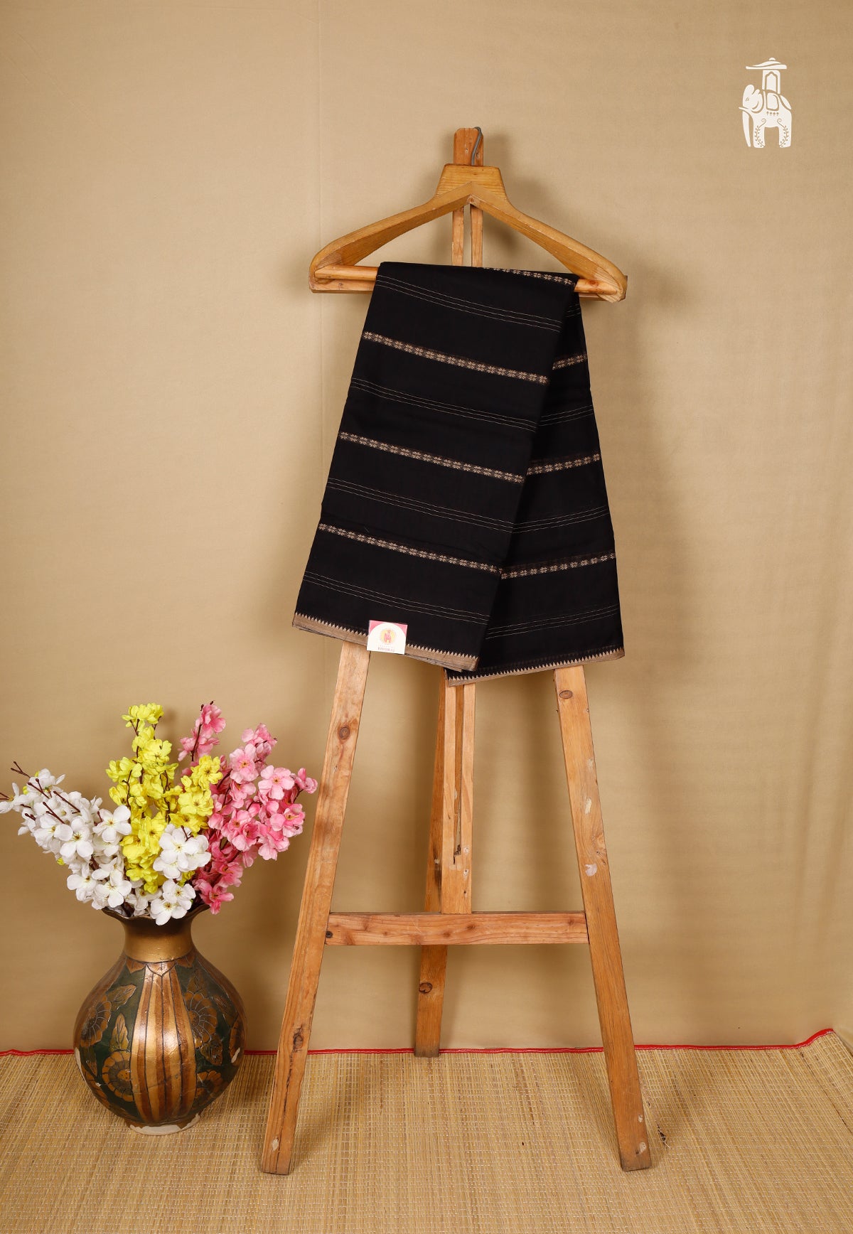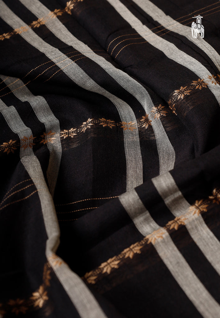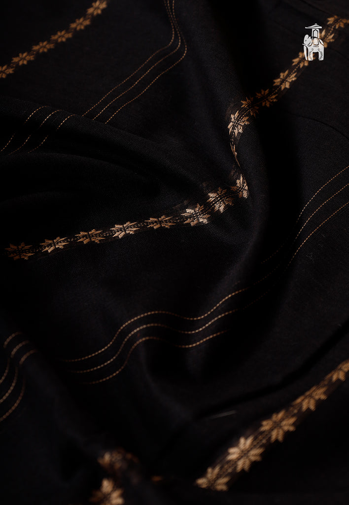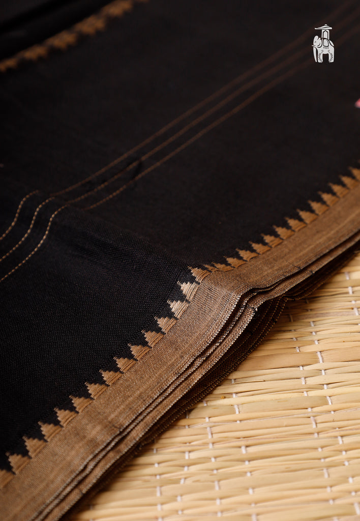 Bringing to your the classic - Black Narayanpet Cotton Saree with inchi zari border & mini floral details.