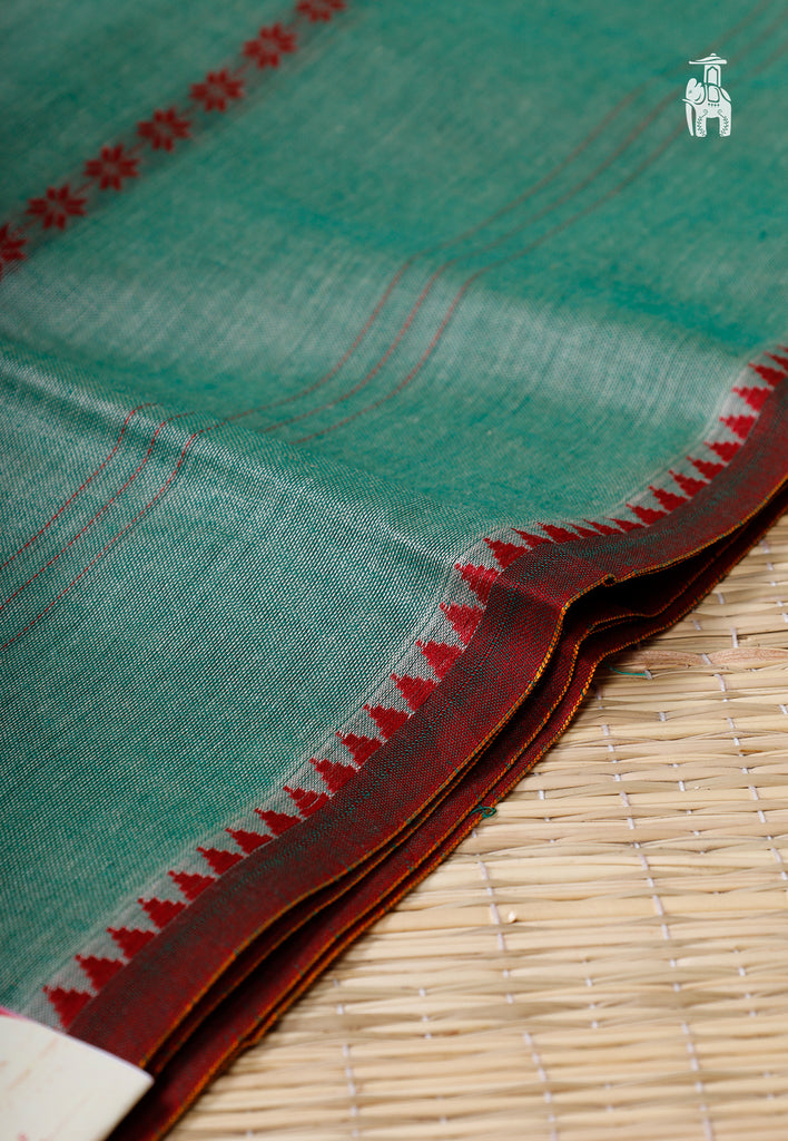 Let your comfort win during summers! Check out this latest Green Narayanpet Cotton Saree in Red piping border.
