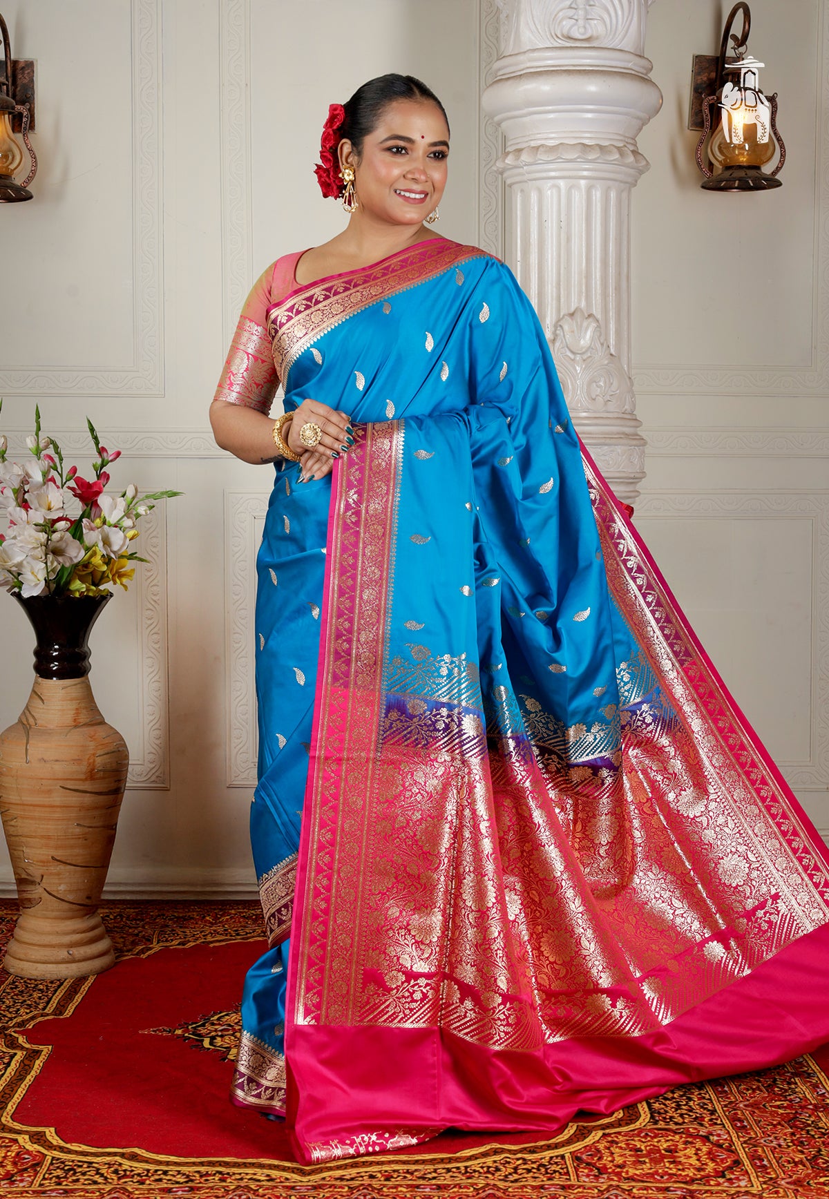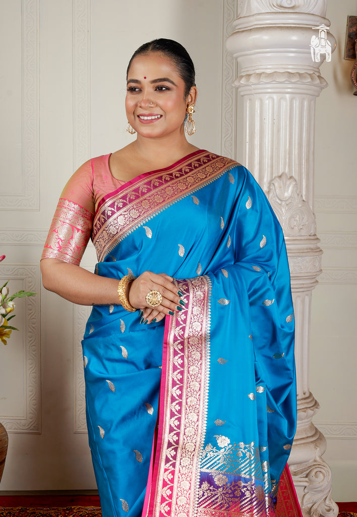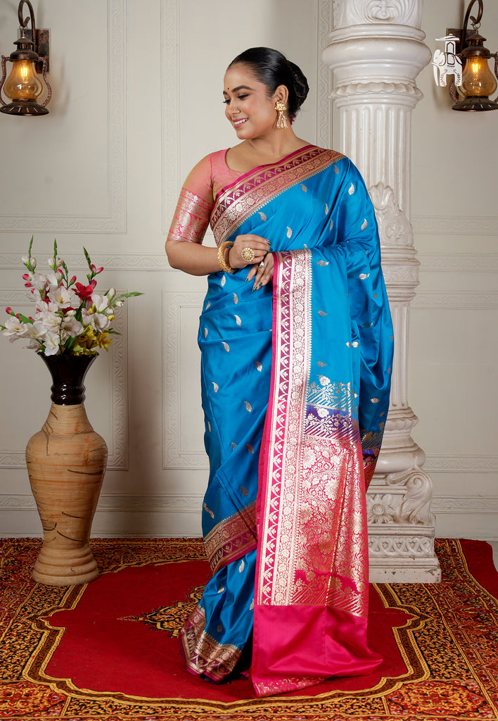 Blue Satin Katan Banarasi Saree