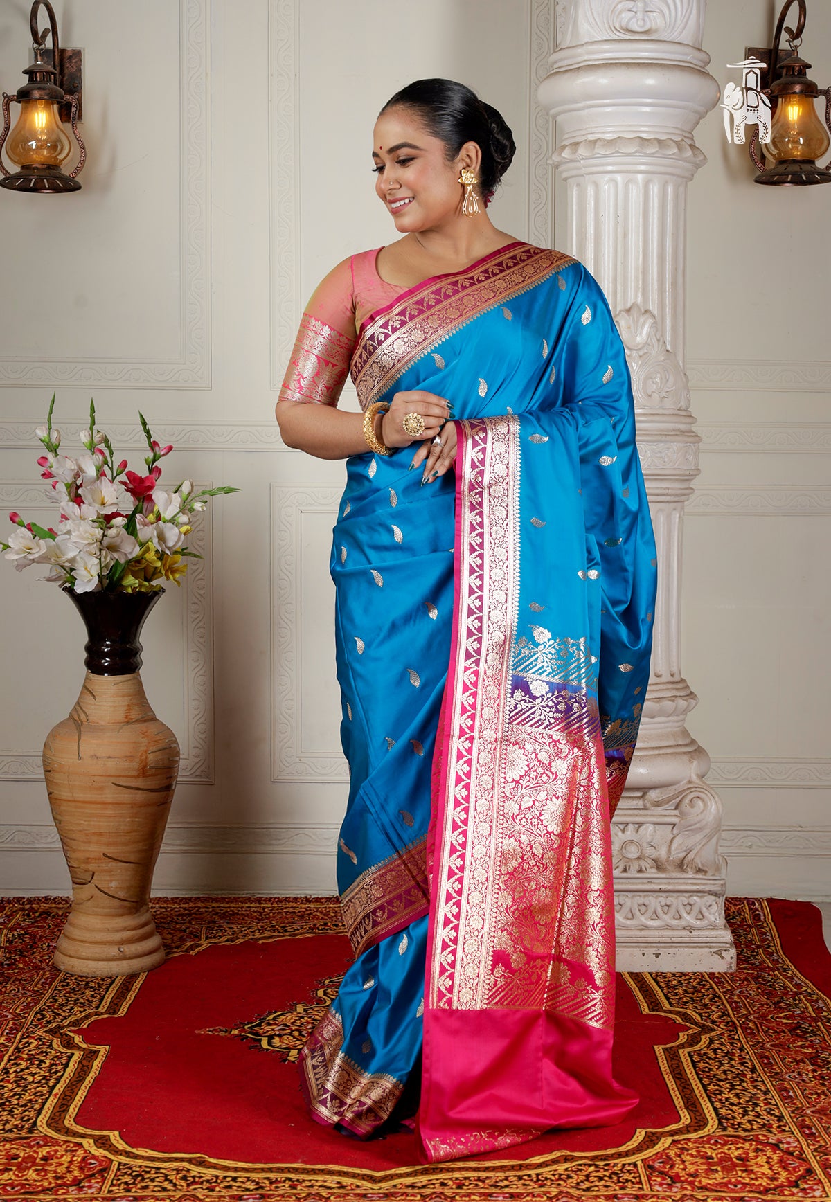 Celebrate this Blue Banarasi Saree on yourself! Book now on NO COST EMI for budget-friendly shopping.