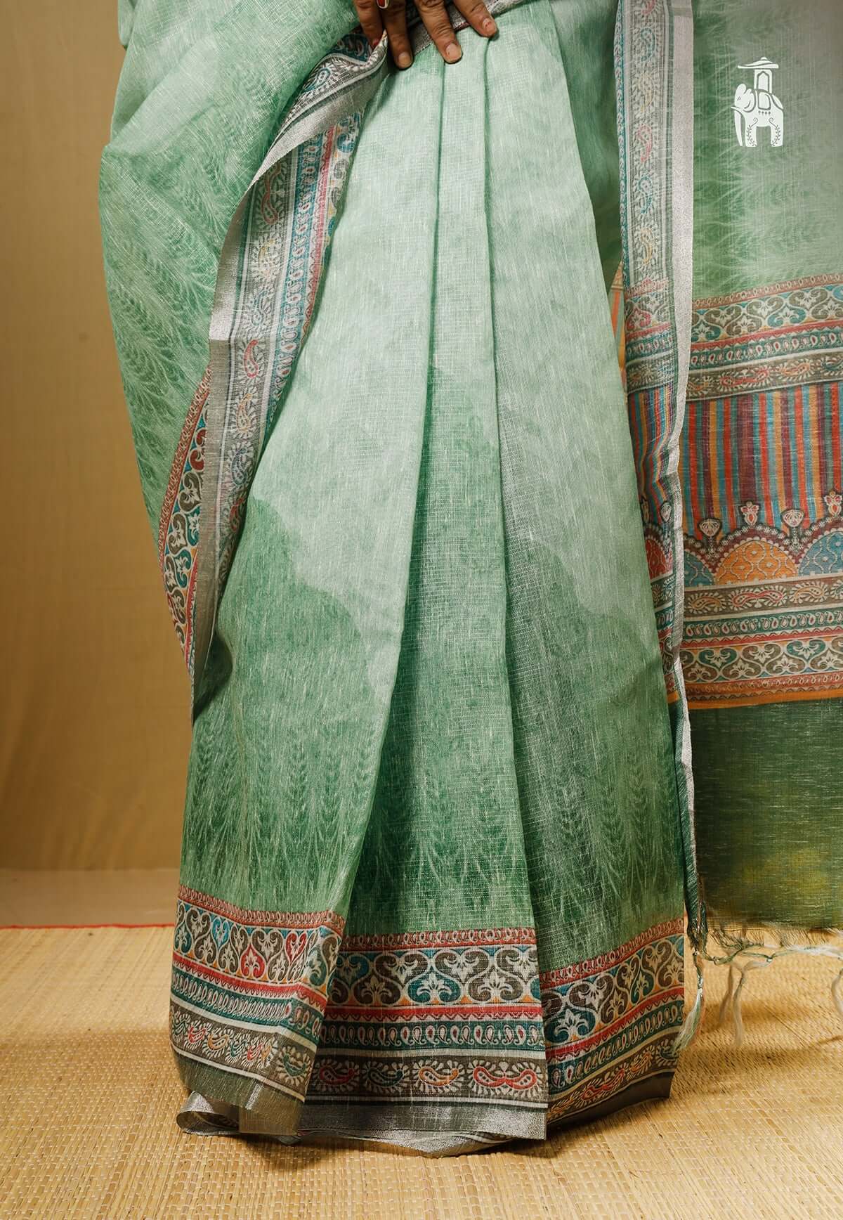 Green Linen Tissue Saree