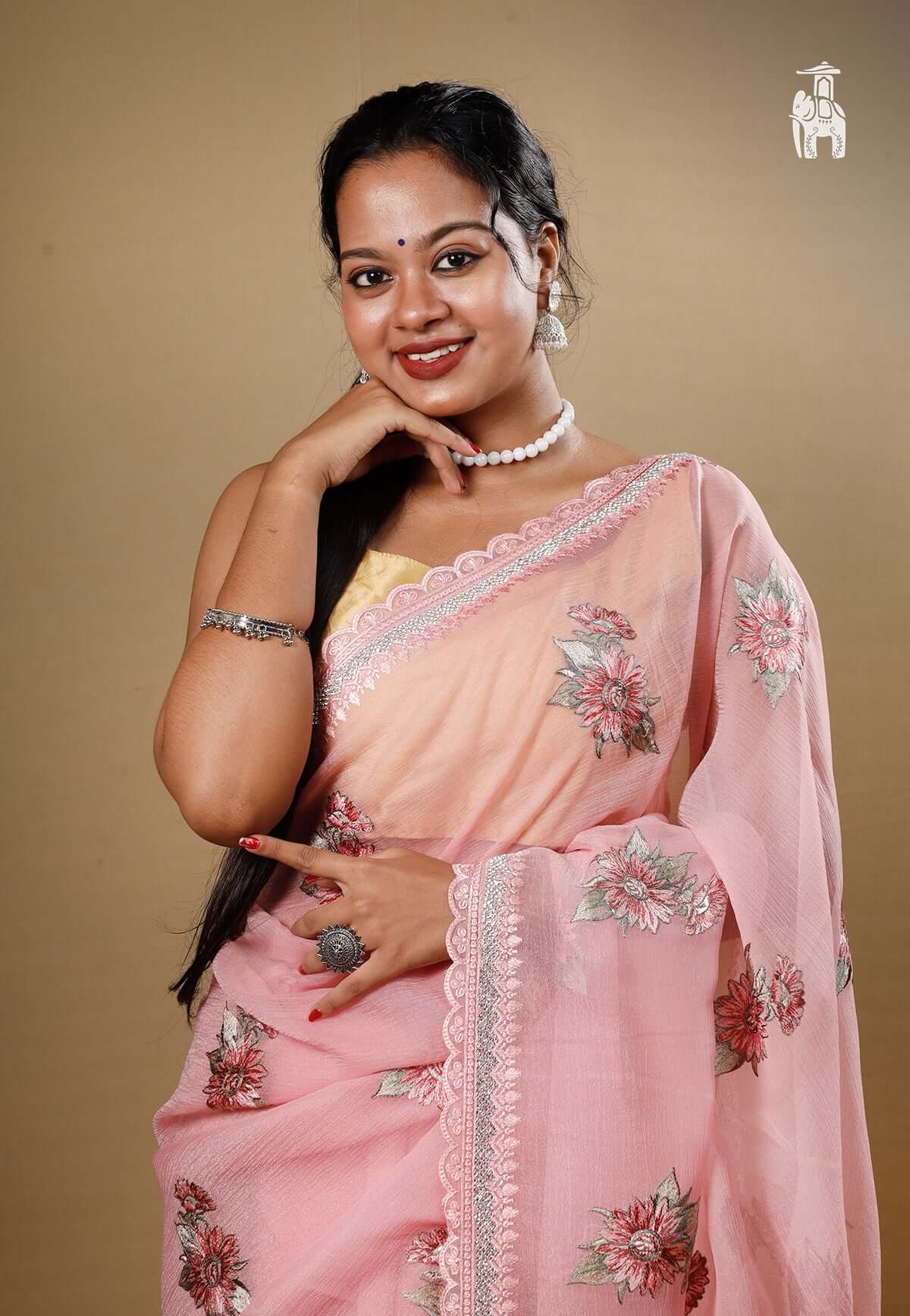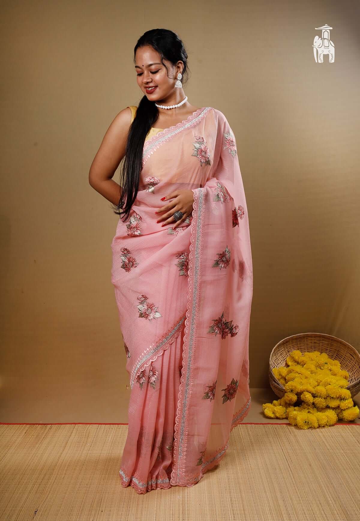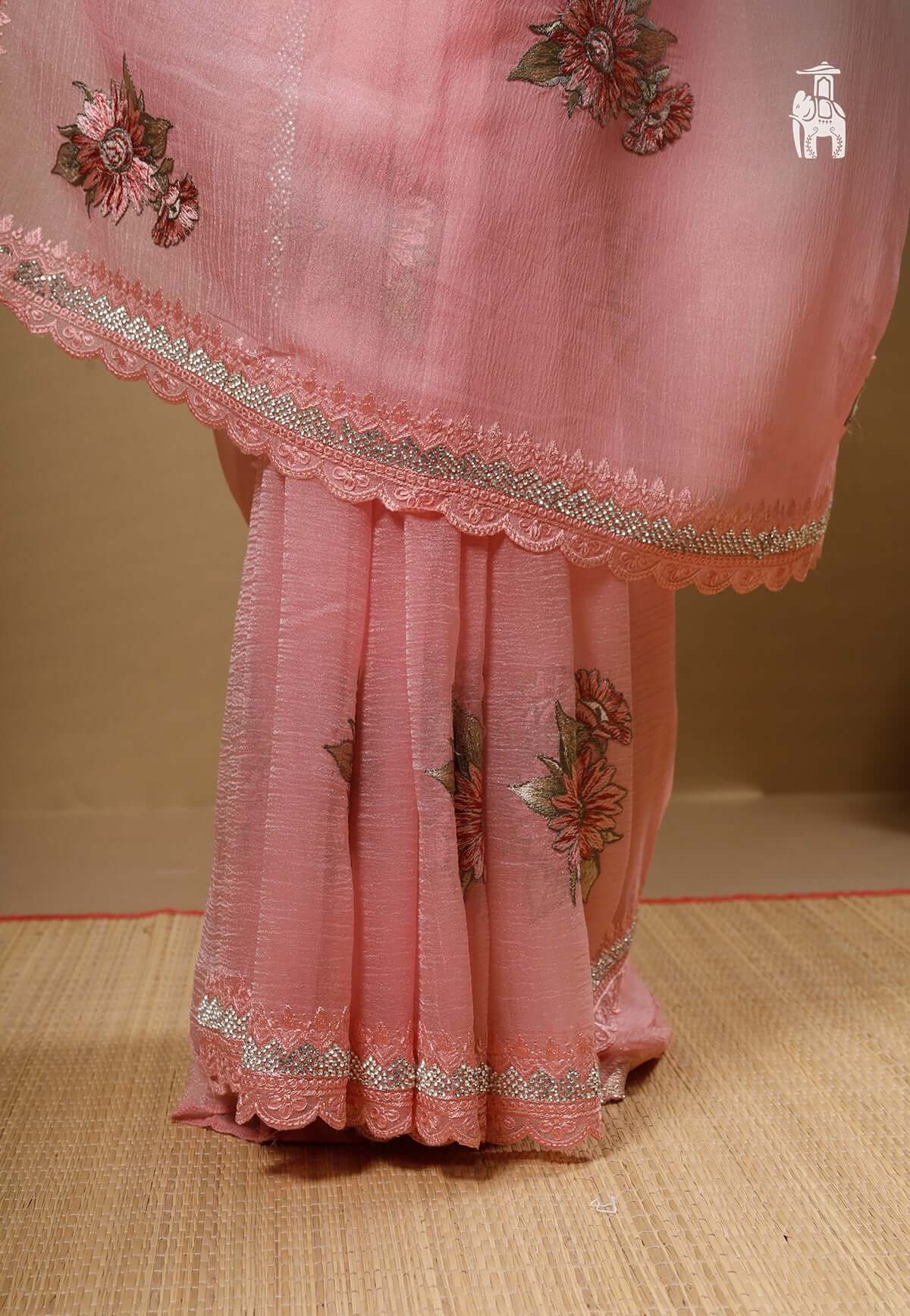Light Pink Floral Chiffon Saree