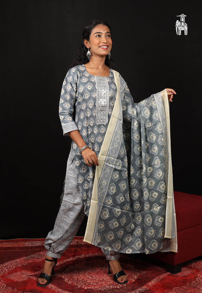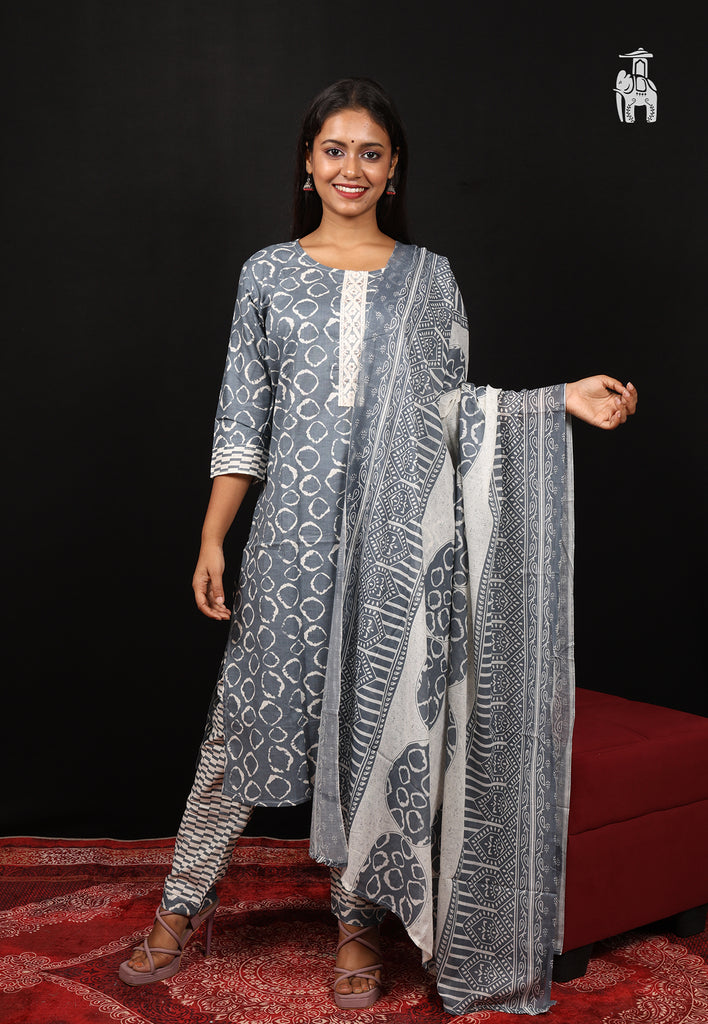 Get this pretty, rayon-woven Blue Suit Set at just ₹690 only. This soft & breathable 3-piece suit features elegant blockprinted designs, giving you a smart ethnic appearance for any occasion. Order now!