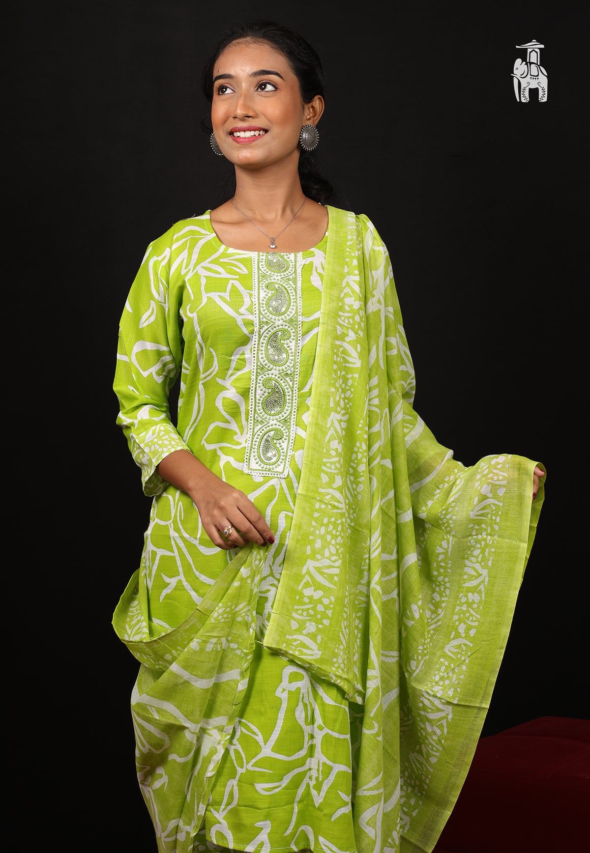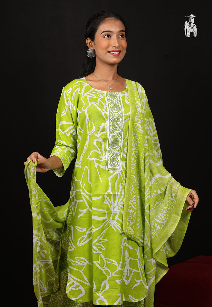You get a Green pant in matching shade, & a dupatta with this Suit Set, to style comfortably & effortlessly at the same time.