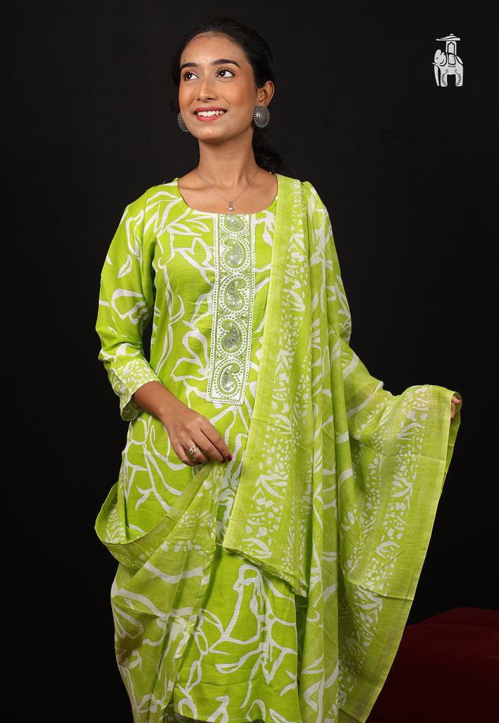 Go aesthetic with your summer casuals! Try this Lime Green Suit Set with all over traditional prints & designs.