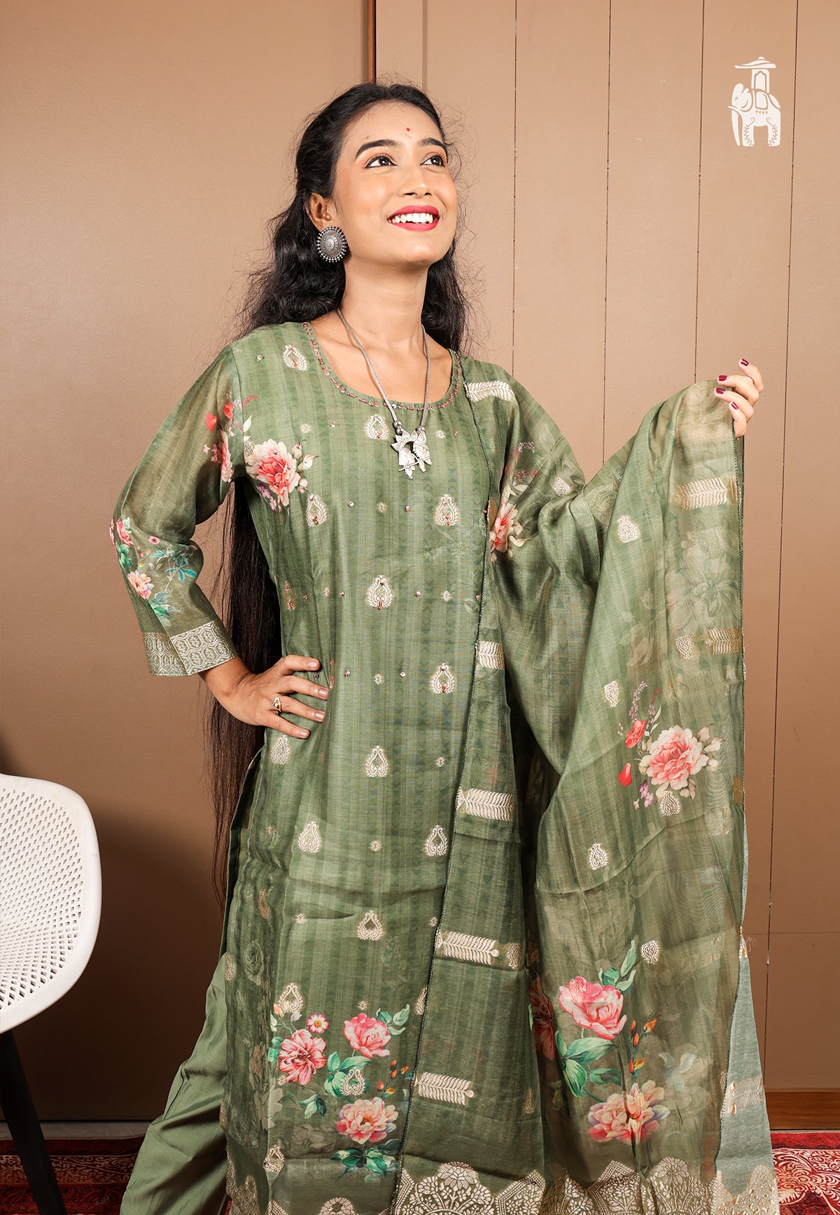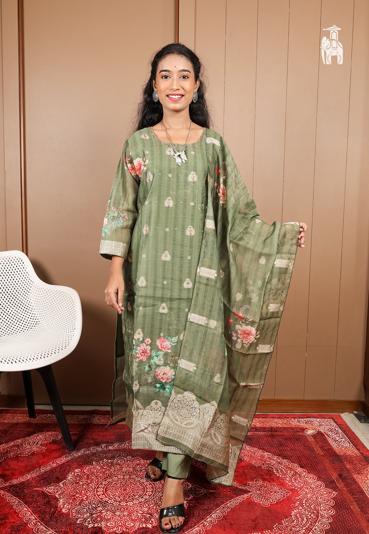 This Diwali, shop this Olive Green Suit set with floral prints, at this budget-friendly price, only from Legacy of Bhojraj.