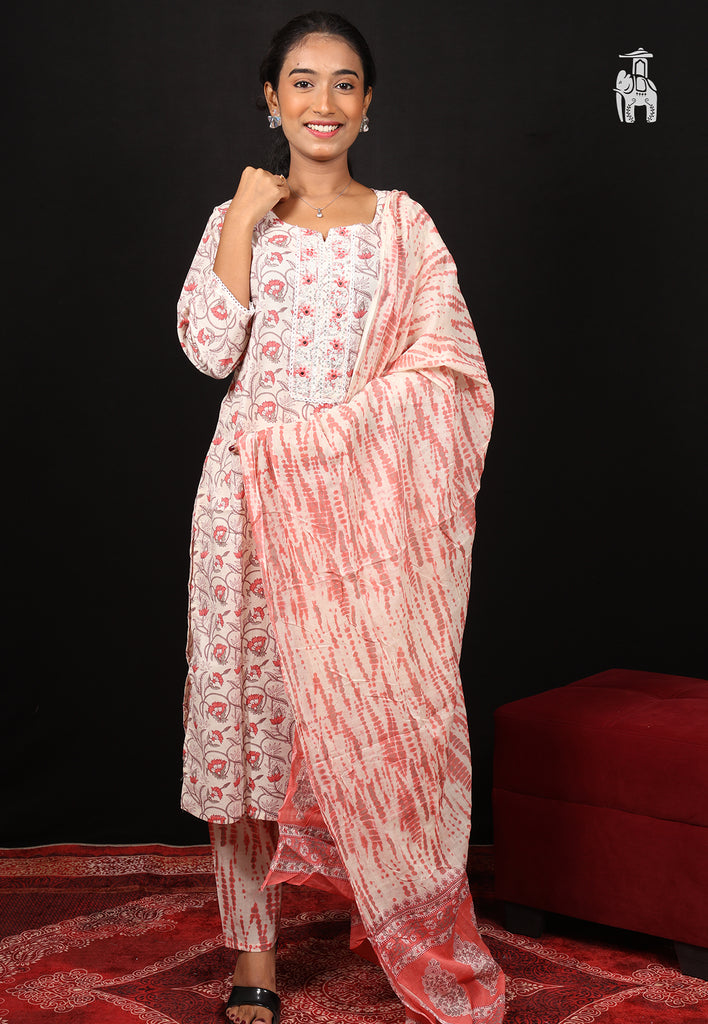 Flaunt your casual style in this brand new White Suit Set with stylish blockprinted designs, a stylish dupatta & a matching pant at a surprising price of ₹1250 only. Get this Suit set for yourself now.