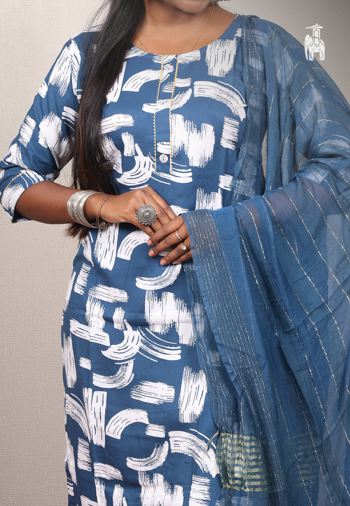 Ready to get a new look, this festive season? Buy this Blue Suit Set with trendy digital print patterns all over your straight-fit kurta & pants.