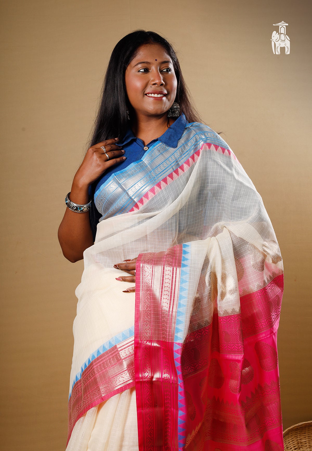 Love Gadwals but waiting for discounts? Bringing this latest White Kota Gadwal Saree just for you.